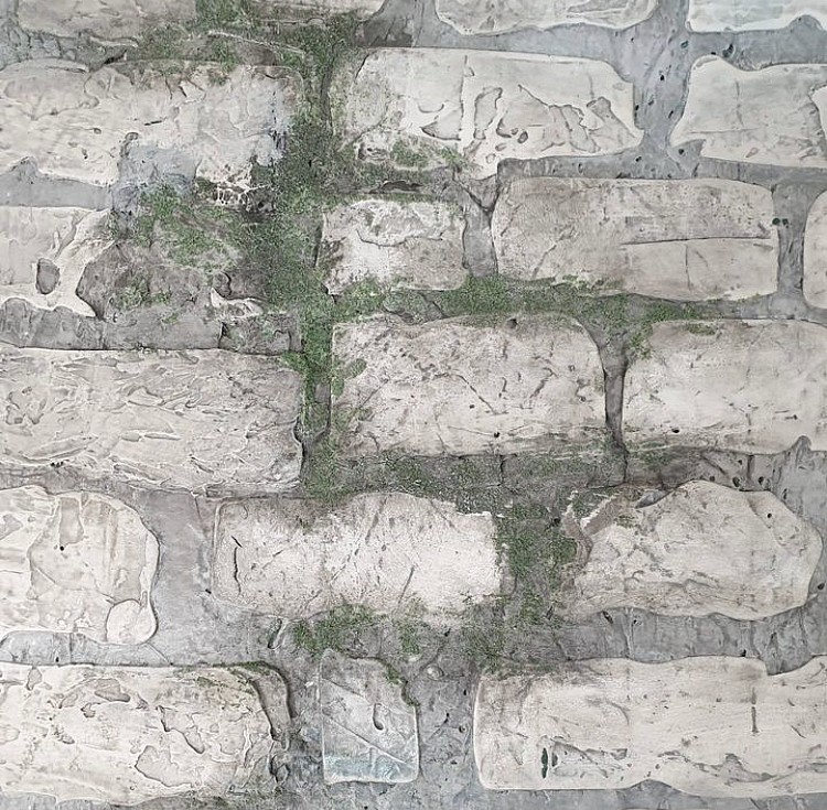 Трафарет с виду прост. Но так же и прост в использовании. Размер идеален, подгонять одно удовольствие. Стена-пол, да хоть потолок! Рекомендую. В два слоя, а то и в три эффект натурального кирпича!