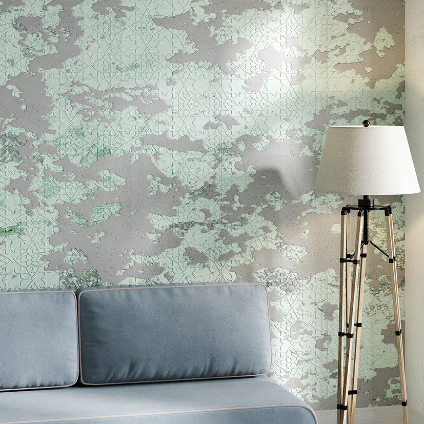 Этот трафарет идеально стыкуется в бесконечном раппорте, брутальный стиль, прекрасен для мужских работ с имитацией фактур железа, камня, окислов и ржавчины в стиле лофт.