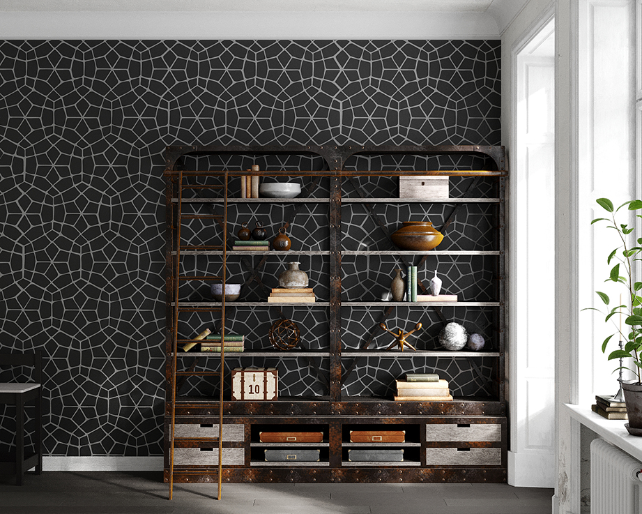 Кружевной геометрический орнамент «Тристан» можно увеличить от 30 до 80 см по высоте. Бесшовный трафарет без полей идеально стыкуется в бесконечном раппорте, брутальный стиль, прекрасен для мужских работ с имитацией фактур железа, камня, окислов и ржавчины в стиле лофт.
